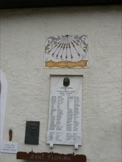 Nel centro storico di Canazei si trova la piccola Chiesa di San Floriano, nella cui parete esterna è murato un proiettile italiano sparato il 6 ottobre 1915 da Cima Cadina.