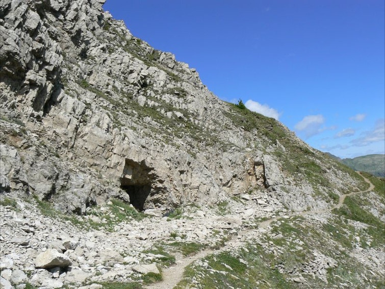 Si segue il sentiero a destra, fiancheggiando resti di baraccamenti per l’alloggio di truppa fino ad imboccare la ripida mulattiera di guerra italiana che costeggia alcune caverne e nicchie (“Stoli” in dialetto locale) scavate nella roccia con lo scopo di ospitare uomini, munizioni e rifornimenti al riparo dei colpi dell’artiglieria avversaria.