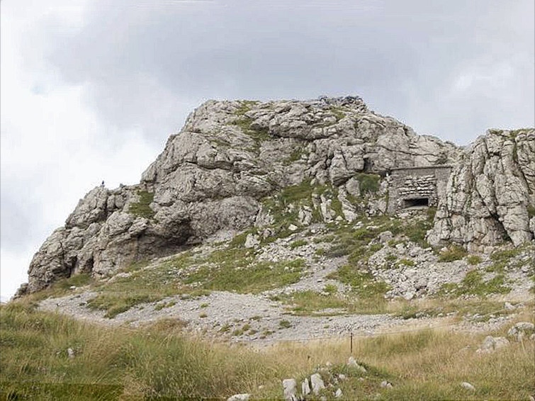 Verso il pianoro occidentale, si possono scorgere numerosi resti di trincee e postazioni in caverna che davano ricovero a piccoli pezzi di artiglieria, mitragliatrici e, probabilmente, a un riflettore.