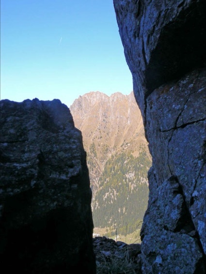 Seguendo le indicazioni si prosegue lungo la cresta erbosa fino alla postazione avanzata di mitragliatrice, con vista su tutta la Valle di San Pellegrino.