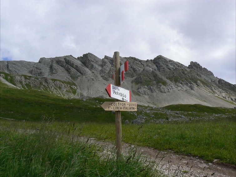 Dopo circa un’ora di cammino, ci si distacca sulla sinistra dal sentiero principale e si seguono i segnavia (paletti verniciati di rosso e bianco sovrastati da filo spinato) fino a raggiungere dapprima i ricoveri in caverna e, successivamente, le cannoniere italiane del Colifon che battevano le postazioni austriache sulla cresta di Bocche.