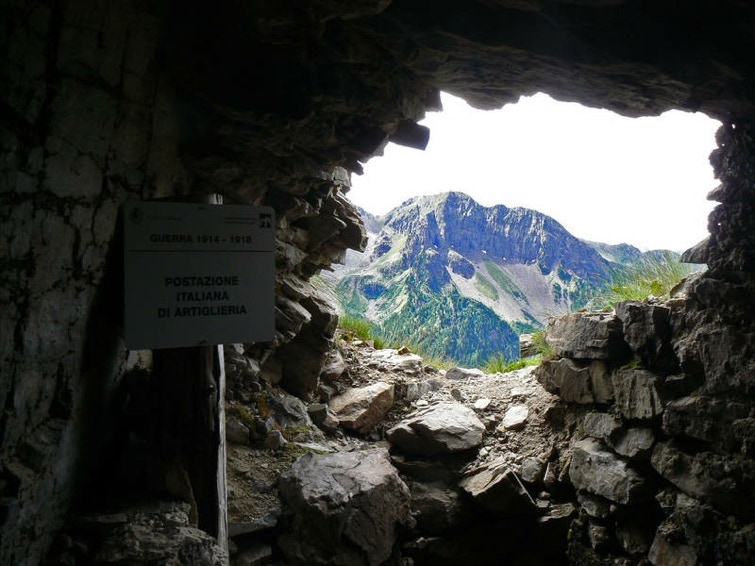 I lavori di ripristino hanno reso percorribile una galleria che mette fin comunicazione le postazioni in caverna con una lunga trincea alle pendici di Punta Alochet.