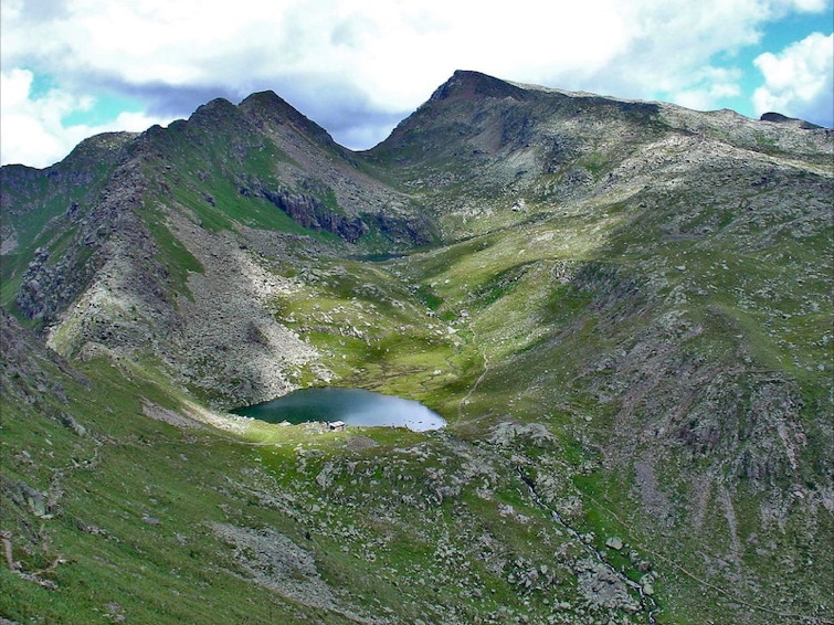 Da questo punto si scende lungo uno stretto ripido camminamento fino al bivacco Redolf, sulle sponde del primo laghetto di Lusia (m 2333).