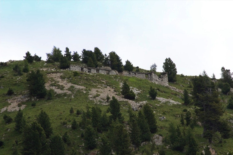Seguendo le indicazioni, si imbocca sulla sinistra il ripido sentiero che in poco più di un’ora conduce in vista dei resti di un ampio edificio in muratura che venne utilizzato dagli austriaci come osservatorio per i pezzi di artiglieria collocati nel fondovalle.