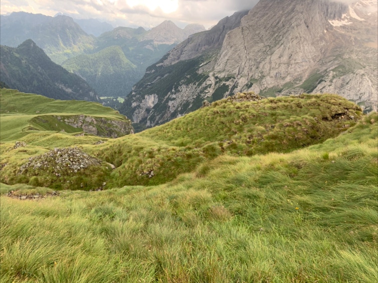 Si rientra quindi al Passo Fedaia seguendo il sentiero che percorre la pista da sci.