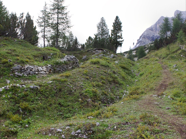 Il cosiddetto “Trincerone del Nido” rappresenta la parte meglio conservata di ciò che nella cartografia militare austriaca era contrassegnato come Fedaja Hauptstellung.