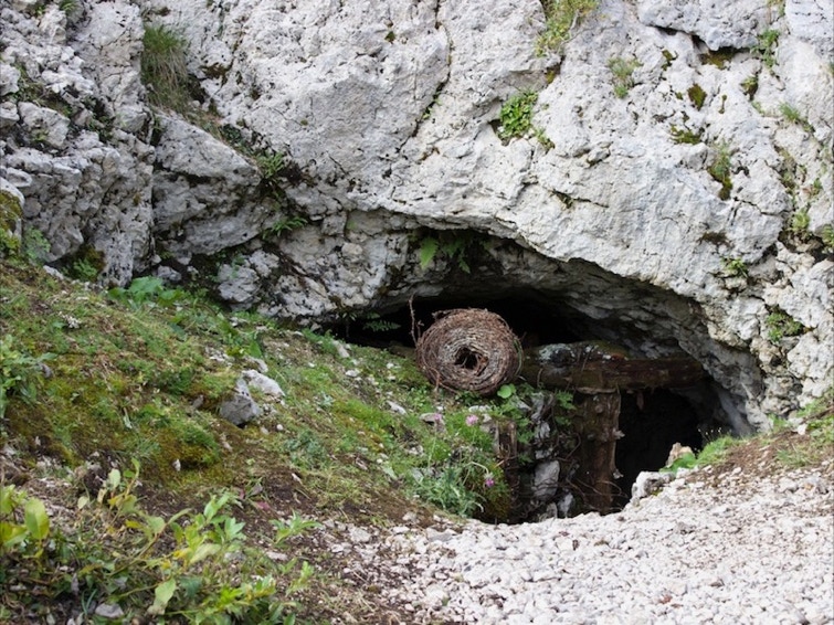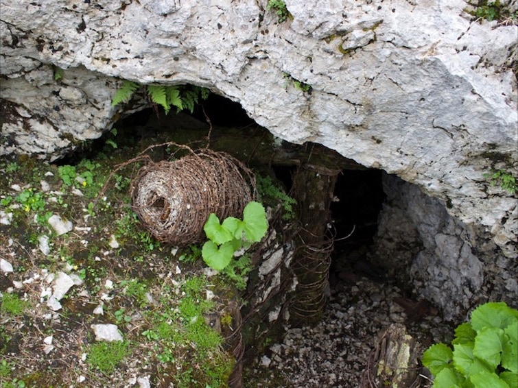 All’ingresso della galleria-ricovero è ancora presente un rotolo di filo spinato.