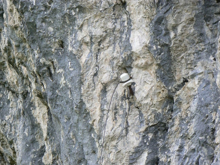 Il sentiero con ripidi tornanti si dirige verso destra verso la base della parete rocciosa fino a raggiungere alcune caverne sulle cui pareti sono ancora visibili gli isolatori in ceramica delle linee elettriche e telegrafiche ed alcuni ancoraggi delle baracche. Da tali postazioni si intuisce un ripido tracciato che si dirige verso la sovrastante Cresta di Costabella.