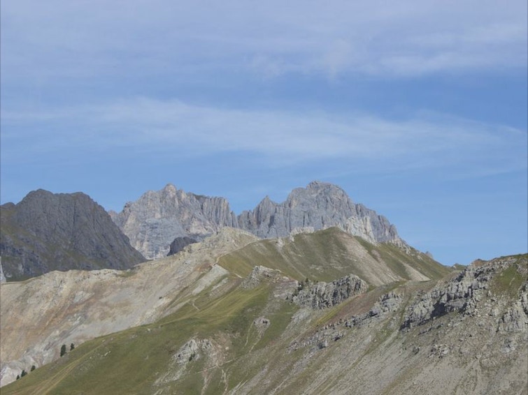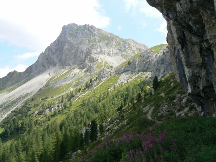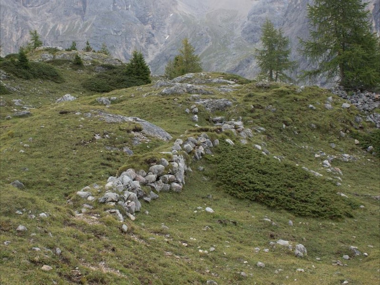 Si prosegue su terreno più sassoso con resti di reticolati sul sentiero 609, tagliando la testata della Valle, e con una serie di ripidi tornanti si raggiunge il ciglio superiore del ripiano alla base del Col Ombert.