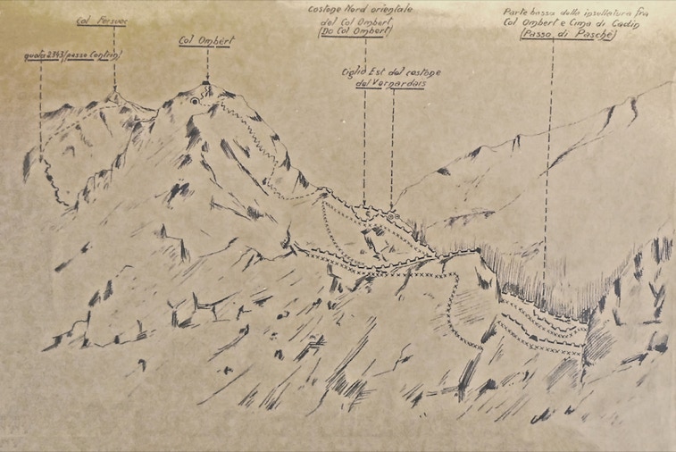 Da essa dipendevano le trincee e le postazioni in caverna poste a difesa più in alto, sull’orlo dei Lastei di Pasché.