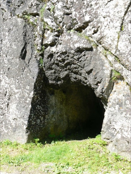 Sulla destra si osservano le nere paretine della Crepa da Ronch (palestra di roccia) nella quale si aprono alcune caverne.