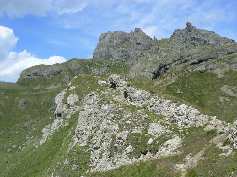 Raggiunto l’avvallamento ove il sentiero si ricongiunge con il sentiero 601, è possibile vedere sulla destra il crestone del Pescul con resti di opere militari.