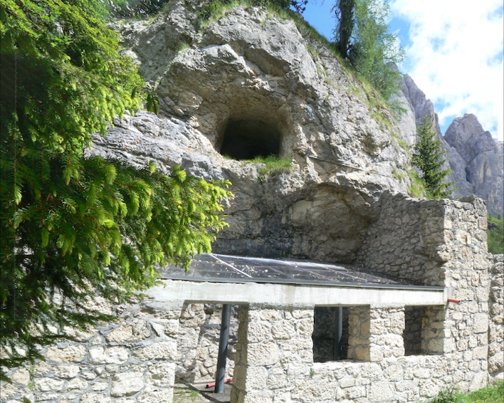 In prossimità del Rifugio e proseguendo lungo il sentiero n. 610 verso il Passo d’Ombretta, si raggiungono resti di baracche e gallerie scavate nella roccia.