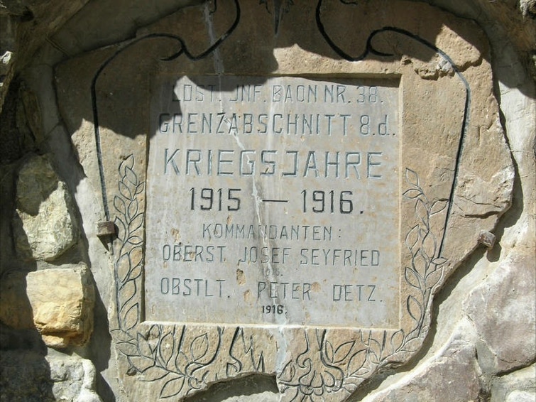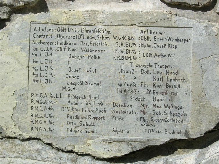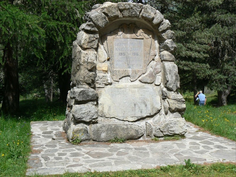 Seguendo la carrareccia, lungo il percorso, in località Ciampié ci si imbatte in alcuni cippi commemorativi eretti in corrispondenza del villaggio di baracche austriaco a memoria dei comandanti di questo settore e dei soldati caduti .