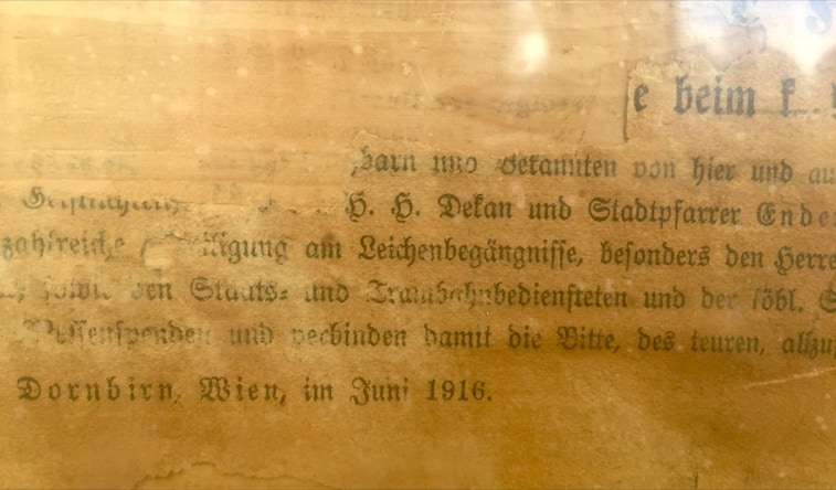 Sulle pareti di uno dei tabià (fienili), in una bacheca, sono conservati ritagli di giornali datati 16 giugno 1916 ritrovati all’interno dell’edificio che era sede del comando delle truppe austro-ungariche