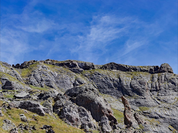 Escursionisti esperti e muniti di attrezzatura da ferrata possono proseguire il sentiero attrezzato in cresta verso le postazioni italiane in caverna della Mesolina.