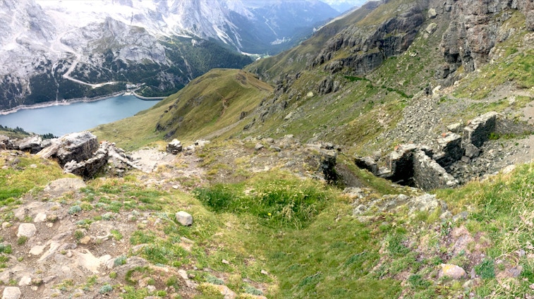 Il sentiero, che rappresenta una delle “vie di fuga” della Ferrata delle Trincee conduce con rapida ma erta salita a una serie di postazioni in cresta in relativo stato di buona conservazione.