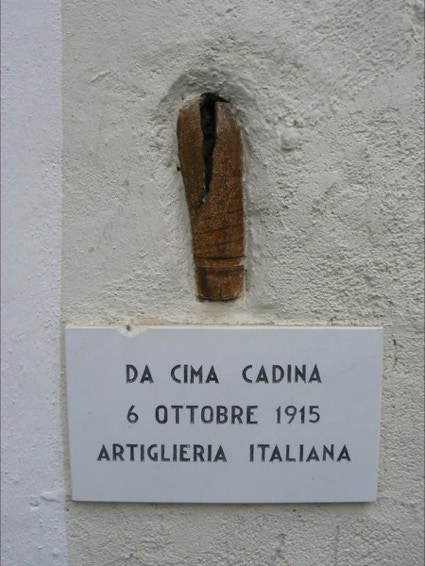 Nel centro storico di Canazei si trova la piccola Chiesa di San Floriano, nella cui parete esterna è murato un proiettile italiano sparato il 6 ottobre 1915 da Cima Cadina.