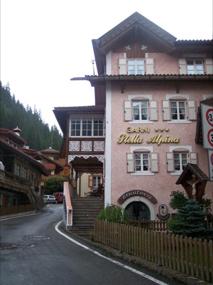 Si risale sulla sinistra la Stréda dò ruf de Antermont costeggiando un albergo che, durante il primo conflitto mondiale, ospitava la Casa del Soldato.