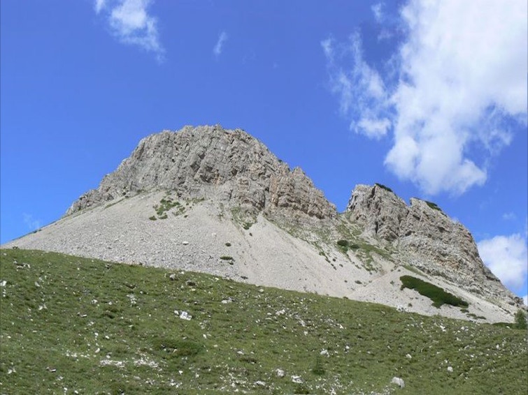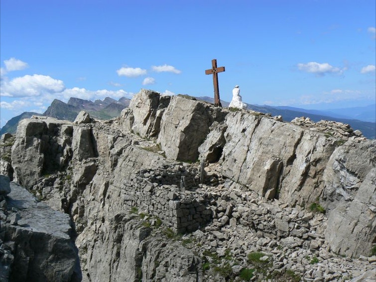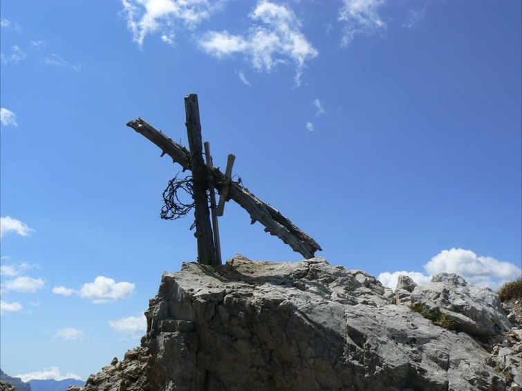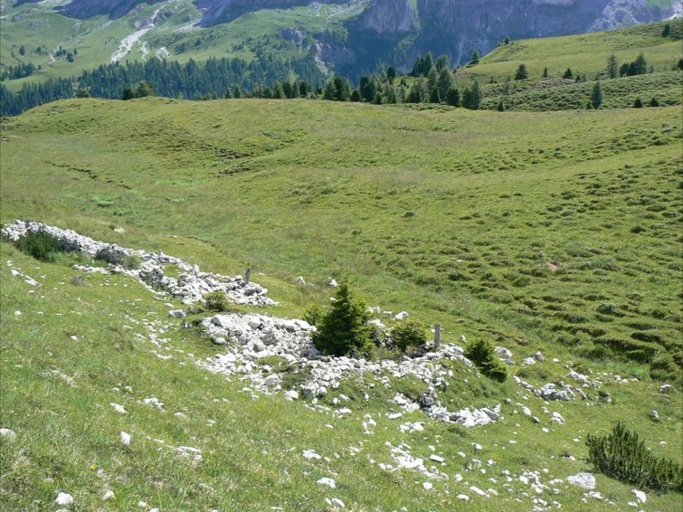 Trincee coperte, resti di baraccamenti e rifugi sono ancora oggi molto evidenti sull'altopiano roccioso che costituisce la cima del Castellaz (m 2333).