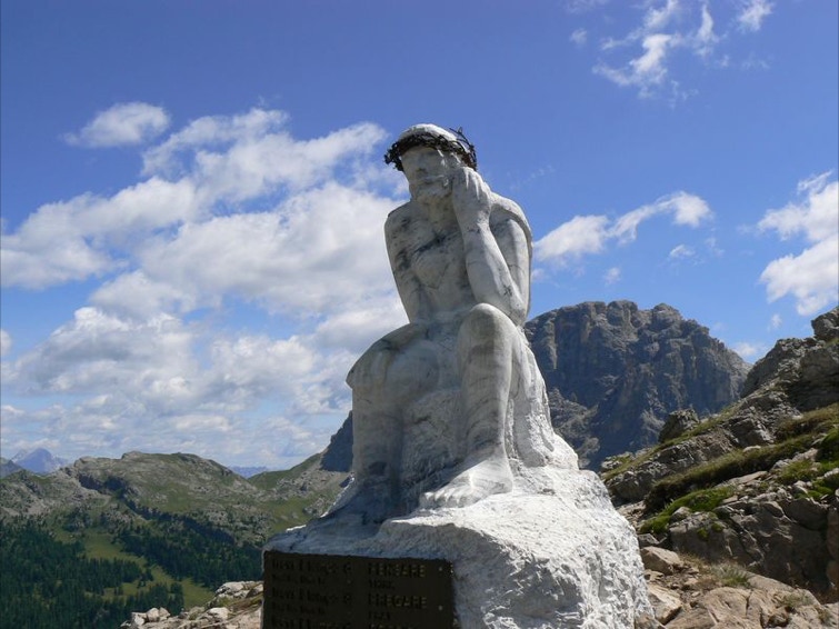A queste memorie si lega la bianca scultura marmorea del Cristo Pensante, coronata dal filo spinato proveniente da queste trincee. La statua è stata posta al termine di un itinerario denominato dal suo ideatore Pino Dellasega “Trekking del Cristo pensante”, con lo scopo di indurre un cammino consapevole per un avvicinamento ai grandi valori che ogni giorno la natura ci trasmette e che per motivi vari non si riescono più ad afferrare.