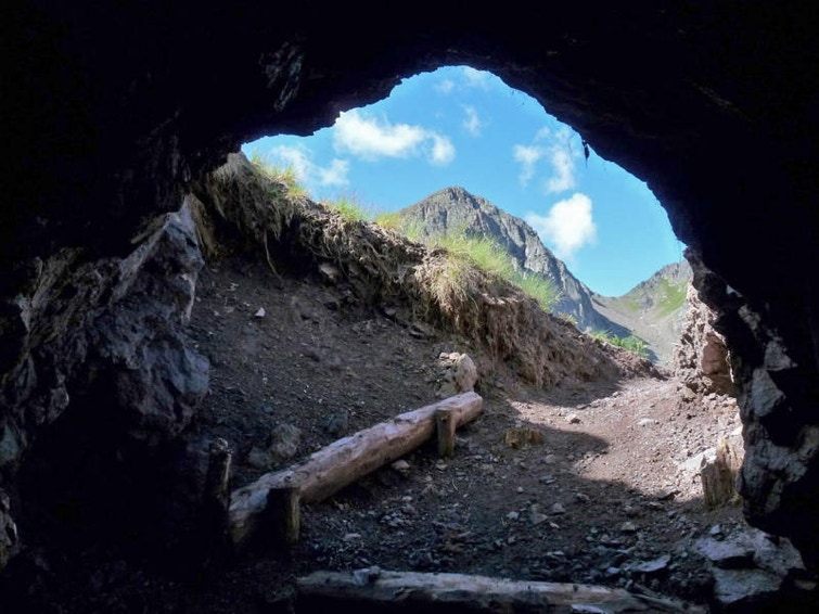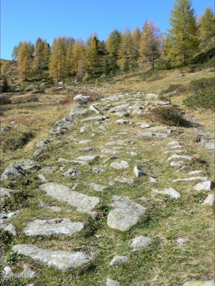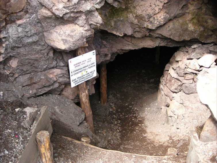In modesta pendenza, si raggiungono in circa un'ora di cammino i ricoveri e le gallerie italiane di Col de le Palue (per la visita alle gallerie è indispensabile la torcia elettrica).