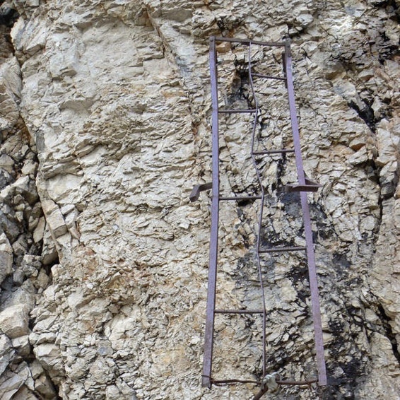 Accanto ad un’ampio basamento di baracca si trova l’attacco della difficile “Via ferrata dei Kaiserjäger” che ricalca il sentiero attrezzato di accesso alla vetta accanto a resti di scalette, fittoni e tratti del cavo metallico, muta e rara testimonianza delle tecniche della guerra in alta montagna.