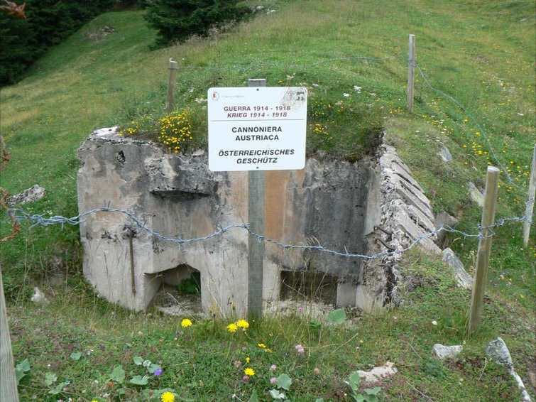 In tale località, in relativo stato di buona conservazione si trovano i resti delle cannoniere austriache in cemento armato che battevano le posizioni italiane sui Passi San Pellegrino e Valles.