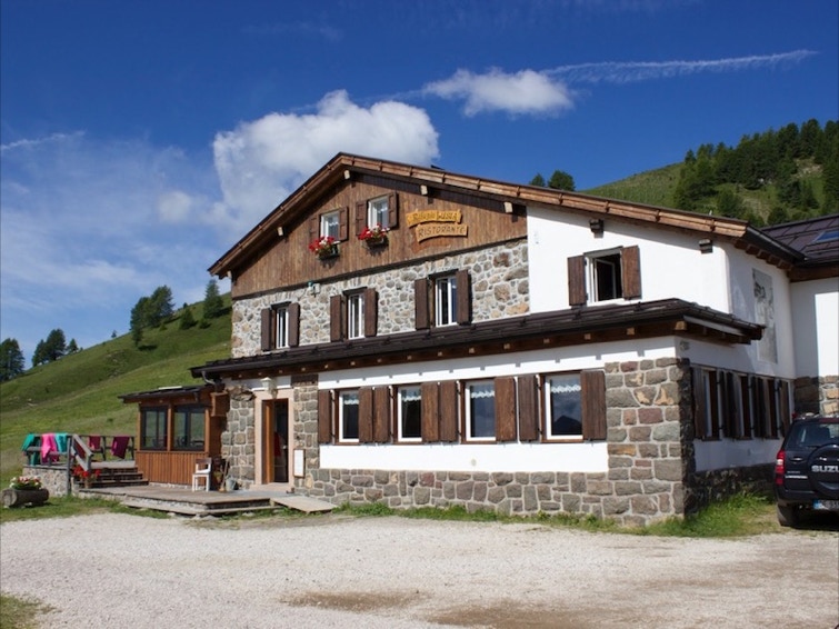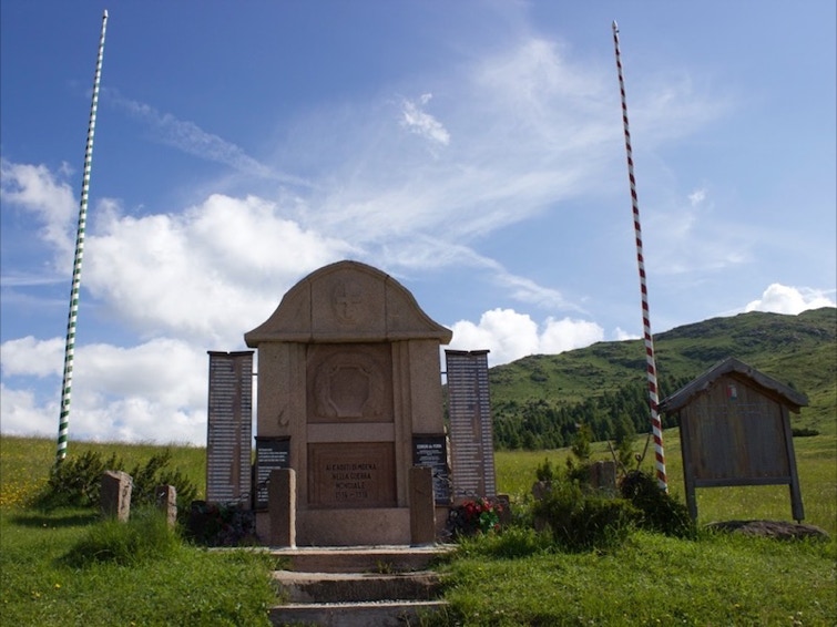 Si prosegue, quindi, per il sentiero 633 e dopo pochi metri si incontrano due monumenti ai caduti. Proseguendo il cammino su di una vecchia mulattiera costruita dai soldati Austro-Ungarici, si giunge con minimo sforzo alle baite Lasté (m 2327); alcune panchine possono essere sfruttate come comodo punto di ristoro o semplicemente per ammirare le Pale di S. Martino sullo sfondo.