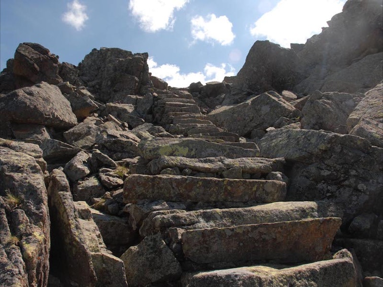 La roccia, di origine vulcanica, è formata da enormi scaglie che sono state sfruttate per costruire le scalinate lungo la cengia allo scopo di agevolare il cammino delle truppe.