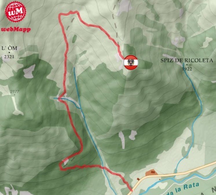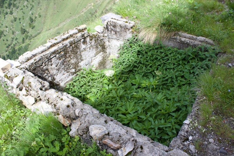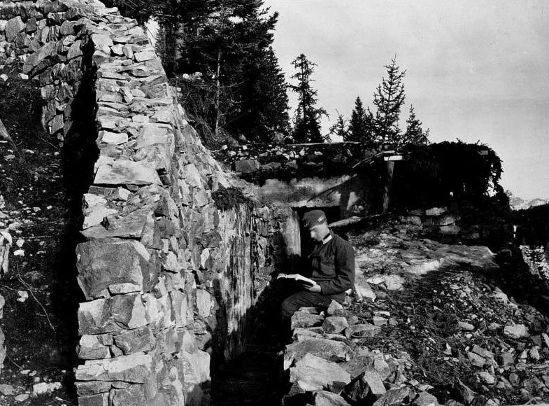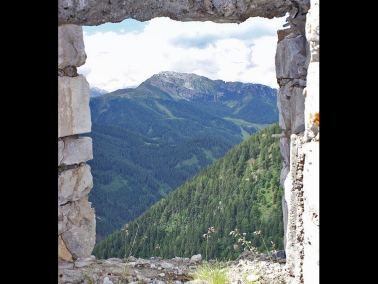 Seguendo le indicazioni, si imbocca sulla sinistra il ripido sentiero che in poco più di un’ora conduce in vista dei resti di un ampio edificio in muratura che venne utilizzato dagli austriaci come osservatorio per i pezzi di artiglieria collocati nel fondovalle.