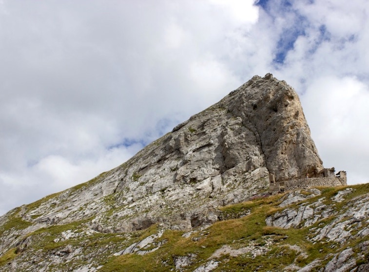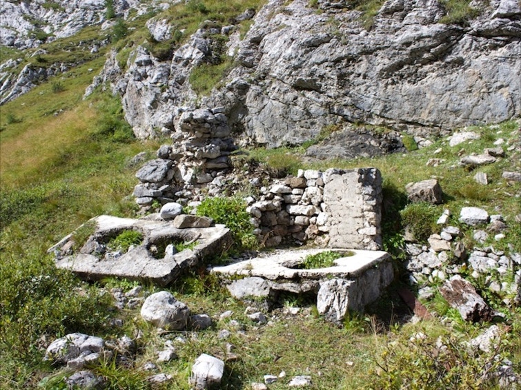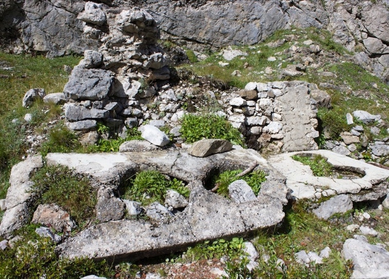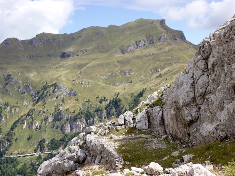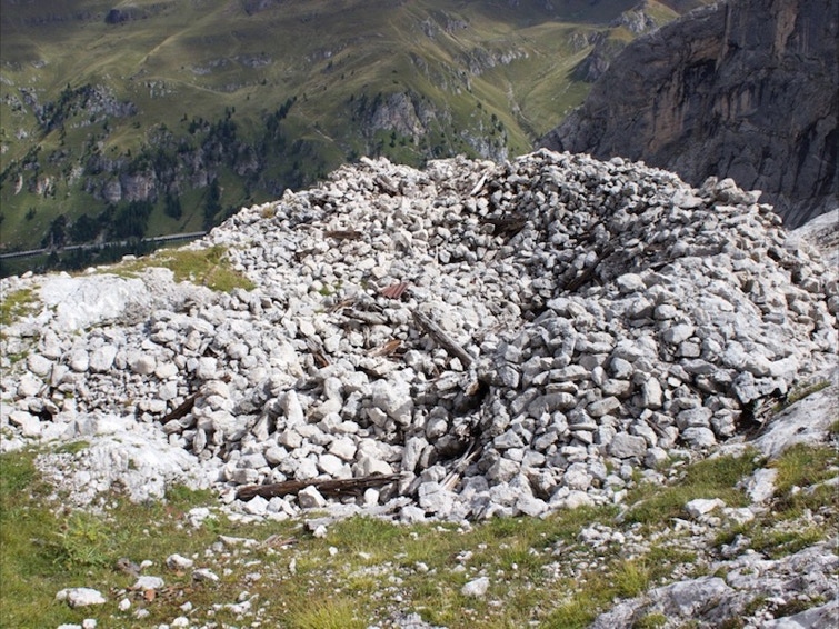 Dal Museo della Grande Guerra di Passo Fedaia, superata la stazione della bidonvia per Pian dei Fiacconi si imbocca il sentiero n° 619 e ci si dirige verso il vasto ripiano boschivo della “ciamorciàa”. Si percorre una stretta gola diffusamente incisa dai fenomeni di erosione dell’acqua di disgelo (le cosiddette “marmitte dei giganti”). Si prosegue tenendosi sulla destra fino a raggiungere un altro ripiano erboso dove sono ancora evidenti i resti dei baraccamenti. In particolare si trova una cucina in muratura in buono stato di conservazione e i basamenti dei baraccamento con i loro ancoraggi. Si prosegue su tracce di sentiero militare fino a raggiungere alcune cenge attrezzate con fune metallica e passerelle di legno fino a raggiungere la forcella del Col de Bous.