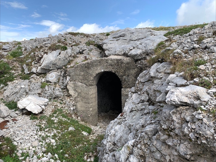 Si seguono i segnavia e si lascia sulla sinistra le indicazioni per la difficile via ferrate “Eterna”. Dopo un paio di tornanti conducono alla prima deviazione che conduce ad una prima galleria che domina il lago (postazione per mitragliatrice).