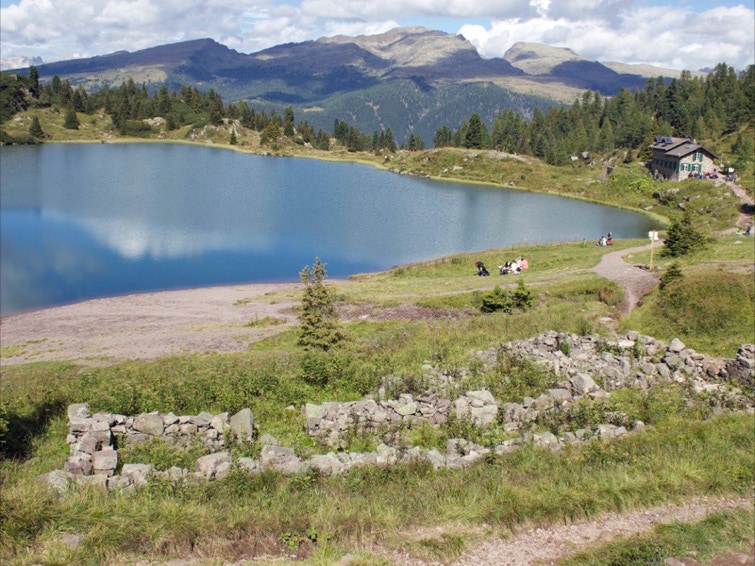 Il ripido sentiero di rientro si dirige verso ovest verso forcella di Colbricon e gli omonimi laghetti. Nei pressi del laghetto superiore, ruderi di baraccamenti militari.