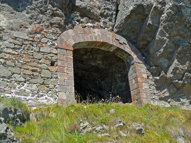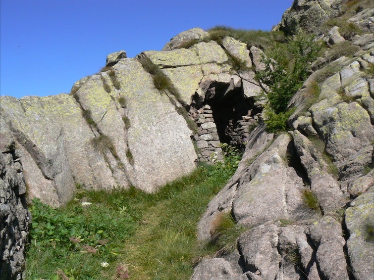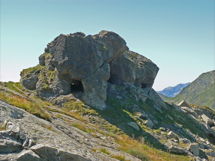 Lungo il crinale, già nelle immediate vicinanze dell’impianto si scoprono trincee e caverne.