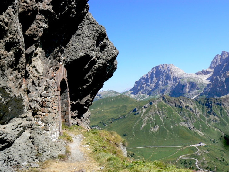 Il sentiero segue i camminamenti costruiti dalle truppe italiane sulla cresta della piccola Cavallazza, attraverso diverse caverne tra loro comunicanti, fino ad arrivare ad un caposaldo di artiglieria eccezionalmente ben conservato.