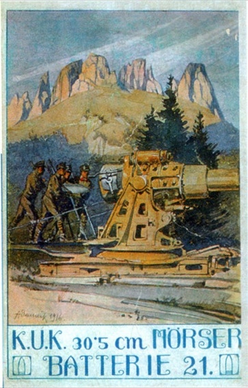 In questa sede, era posizionato il grosso pezzo di artiglieria ed i baraccamenti della K.u.K. 30.5 cm Mörser Batterie Nr. 21 comandata dal Tenente Siegfried Kolisch,.