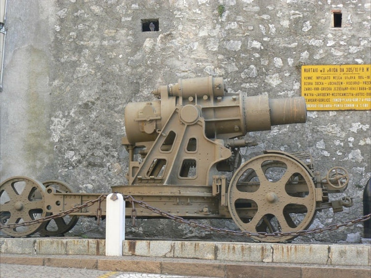 Questo pezzo di artiglieria, di produzione cecoslovacca, ed in dotazione all'esercito austro-ungarico, era il calibro più grosso usato nel fronte dolomitico.