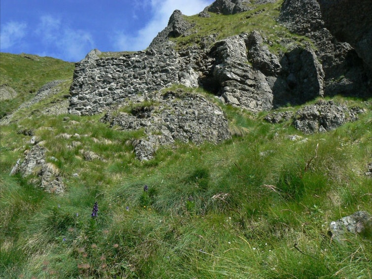 Su una dorsale erbosa sovrastante il sentiero, in corrispondenza di un crocifisso, si apprezzano resti di opere militari.