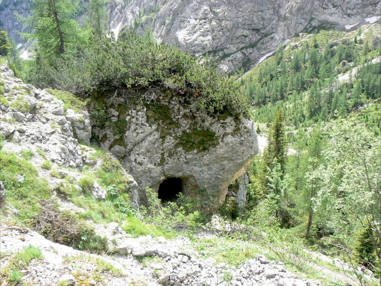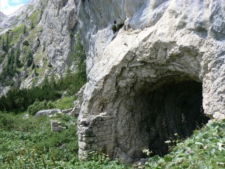 In prossimità del Rifugio e proseguendo lungo il sentiero n. 610 verso il Passo d’Ombretta, si raggiungono resti di baracche e gallerie scavate nella roccia.