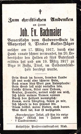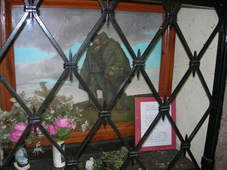 Nella cappellina, un secondo dipinto, a ricordo di un militare Trentino caduto nel 1914 a Hujcze-Ucraina, raffigura un militare che sorregge un compagno ferito.